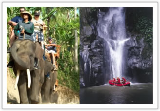アユン川のラフティングと象の散歩30分をセット。一 日で楽しめます。 無料往復送迎、インドネシアバイキングランチ付。